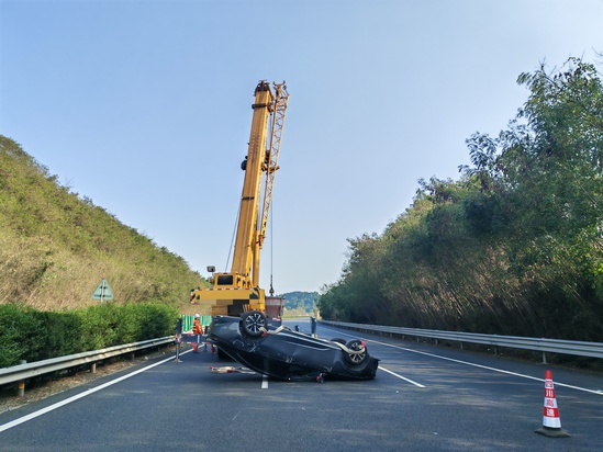 10分鐘后,高速交警與施救隊(duì)伍相繼抵達(dá)。各方迅速分工協(xié)作、高效聯(lián)動(dòng)。高速交警接手現(xiàn)場(chǎng)管控工作,優(yōu)化疏導(dǎo)方案,確保救援通道暢通;施救人員立即投入救援作業(yè),調(diào)配吊車對(duì)側(cè)翻車輛進(jìn)行穩(wěn)妥起吊與轉(zhuǎn)運(yùn)。經(jīng)過(guò)20分鐘緊張作業(yè),事故車輛被安全拖離。隨后,路巡人員快速清理現(xiàn)場(chǎng),撤除警示標(biāo)志,確認(rèn)道路無(wú)安全隱患后,該路段交通全面恢復(fù)正常。