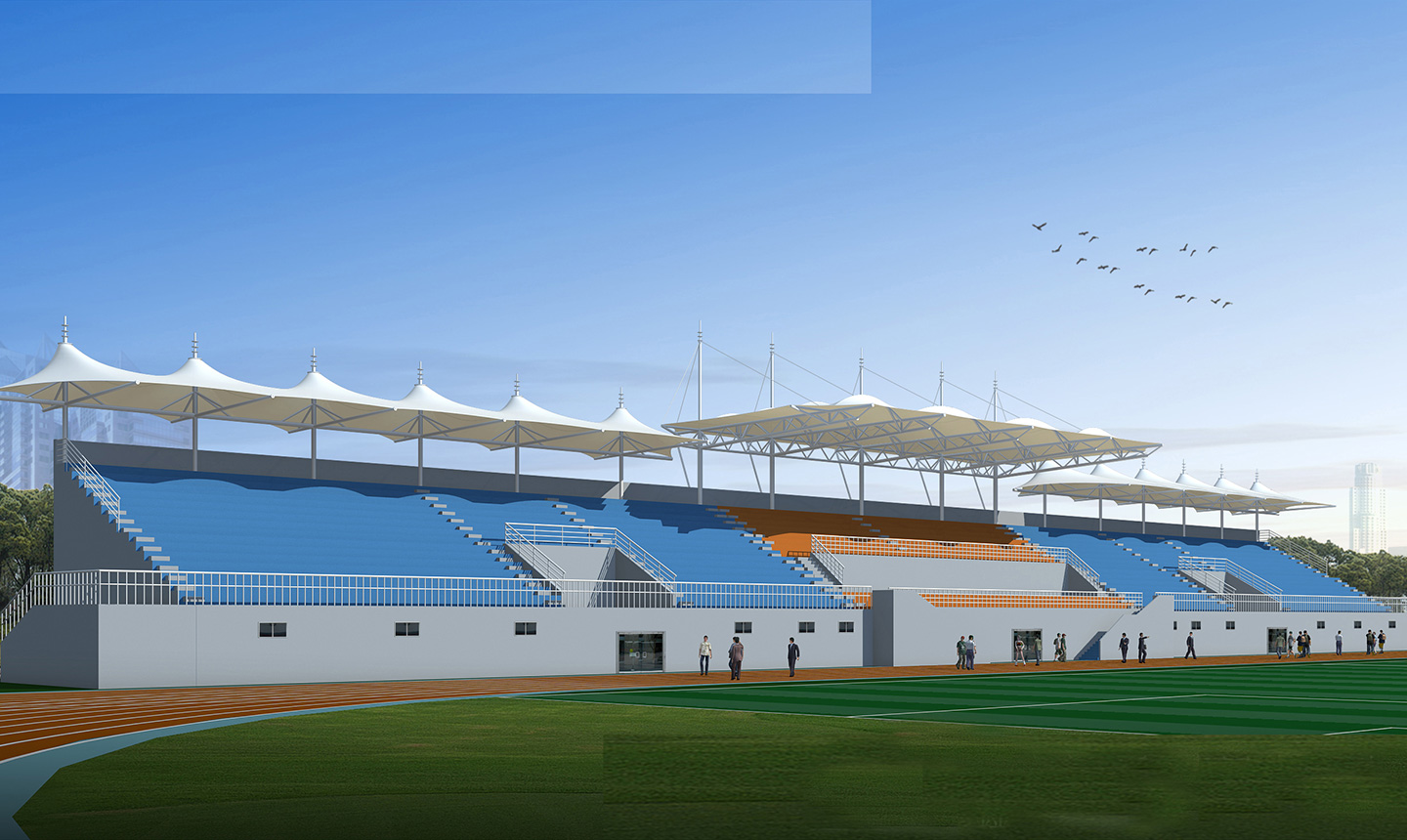 2、體育膜結構看臺的外觀設計一向都是露天的,所以在設計的時候我們需要注意它的承重力,因為一般都是單側建造或者環繞建造,必須有無數個支撐點才能讓整個頂子具有強抗風、抗震的功能 體育場看臺一般都是高大上的感覺,外觀別具特色,實用性也不錯。同時這種看臺在夏季比賽的時候,觀眾特別希望可以坐在遮陽效果好的一面,那么我們就需要把這些因素考慮進去。盡量讓設計大面積的有遮陽效果,最后在膜結構裁剪的時候要量好尺寸,這樣每塊材料才能很好的焊接成功。做到這些,一個完美又實用的體育場看臺就會很快展現在眼前了。
