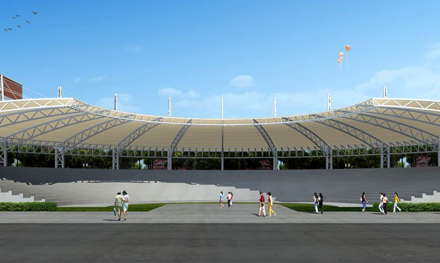 2、體育膜結構看臺的外觀設計一向都是露天的,所以在設計的時候我們需要注意它的承重力,因為一般都是單側建造或者環繞建造,必須有無數個支撐點才能讓整個頂子具有強抗風、抗震的功能 體育場看臺一般都是高大上的感覺,外觀別具特色,實用性也不錯。同時這種看臺在夏季比賽的時候,觀眾特別希望可以坐在遮陽效果好的一面,那么我們就需要把這些因素考慮進去。盡量讓設計大面積的有遮陽效果,最后在膜結構裁剪的時候要量好尺寸,這樣每塊材料才能很好的焊接成功。做到這些,一個完美又實用的體育場看臺就會很快展現在眼前了。