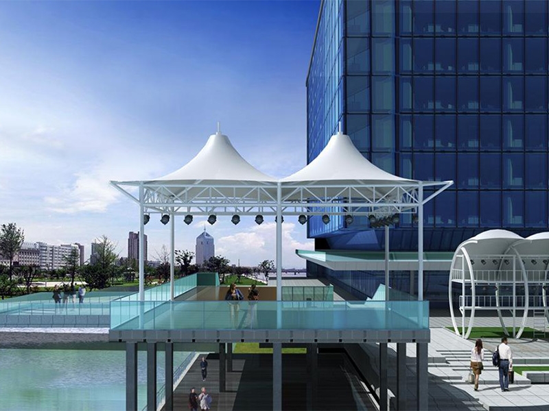 張拉膜工程膜結構屋面采用鋼結構構件踩踏固定,形成穩(wěn)定的結構體系,由各種高強度薄膜材料(PTFE、ETFE)、加強構件、鋼索和錨固系統等組成空間結構形式,并采用柱吊和鋼在膜上施加力來實現一種穩(wěn)定的狀態(tài),從而用美麗的膜結構形式覆蓋鋼結構表面。該施工工藝具有施工精度高、結構性能強、等特點。